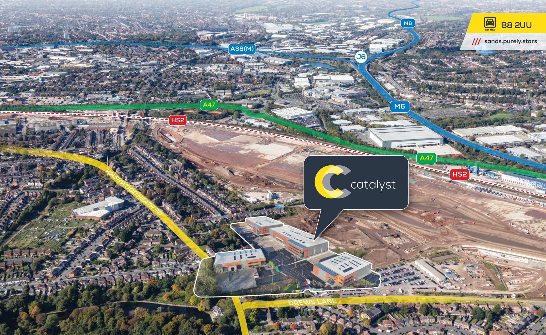 Catalyst Park is located in a popular industrial area of Birmingham on the historic former LDV manufacturing site. Direct access to the scheme is off Drews Lane. It also benefits from being located outside the Birmingham City Centre congestion charge but in easy reach of the Birmingham inner ring road and city centre 4 miles south west.
